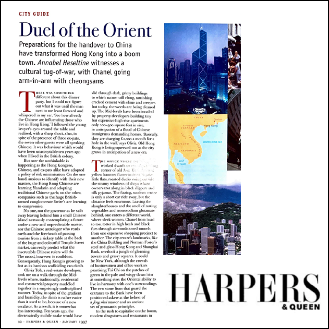 Duel of the OrientPreparations for the handover to China have transformed Hong Kong into a boom town. Annabel Heseltine witnesses a cultural tug-of-war, with Chanel arm-in-arm with cheongsams. Read article