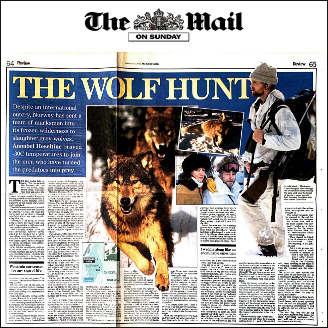 The Wolf HuntDespite an international outcry, Norway has sent a team of marksmen into its frozen wilderness to slaughter grey wolves. Annabel Heseltine braved -30 temperatures to join the men who have turned the predators into prey. Read article