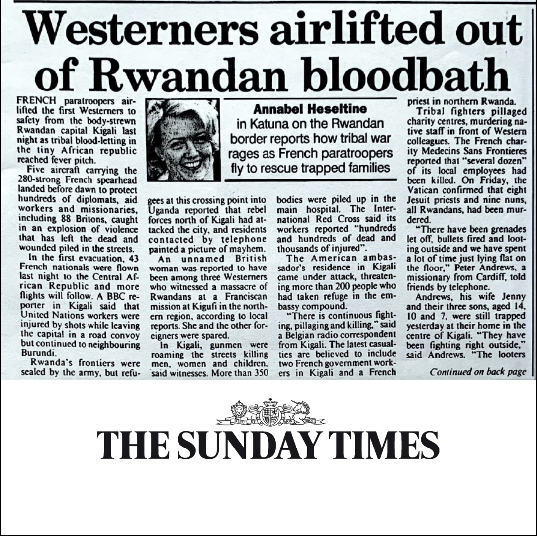 Rwanda reportAnnabel Heseltine in Katuna on the Rwandan border reports how tribal war rages as French paratroopers fly to rescue trapped families. Read article
